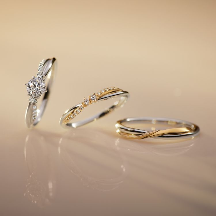 ふたつの星が運命に導かれて出会った奇跡を表現した”STARGAZER”は、希望にあふれたふたりの人生を輝きで照らす、未来への道標に。流星のフォルムに沿ったイエローゴールドのあしらいがスタイリッシュな結婚指輪は、出会った頃の新鮮な気持ちをいつまでも思い出させてくれそう。絆をさらに強くし、同じ道をゆくふたりを見守るリングです。